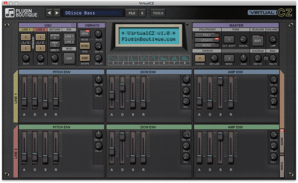 (switchable between easy-to-use ADSR and powerful 8-Stage MSEG mode) - Tempo syncable LFO for vibrato, with 7 shapes