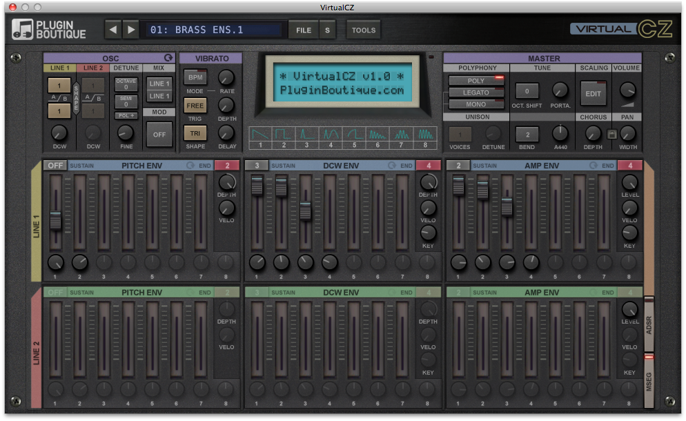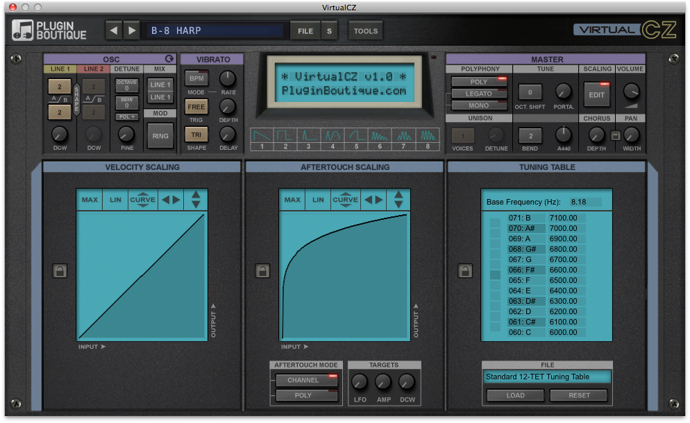 (switchable between easy-to-use ADSR and powerful 8-Stage MSEG mode) - Tempo syncable LFO for vibrato, with 7 shapes